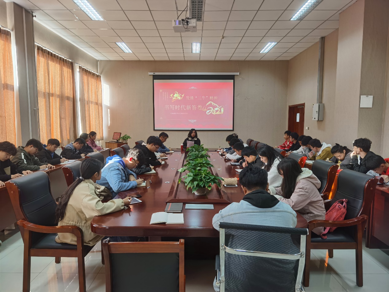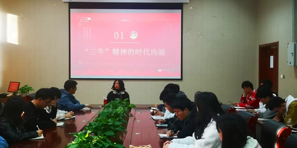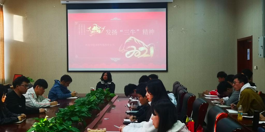 本科生第四党支部召开“发扬”三牛”精神,凝心聚力干事,全面开创学校高质量发展新局面”主题党日活动。会议由党支部书记孙坤岩主持。