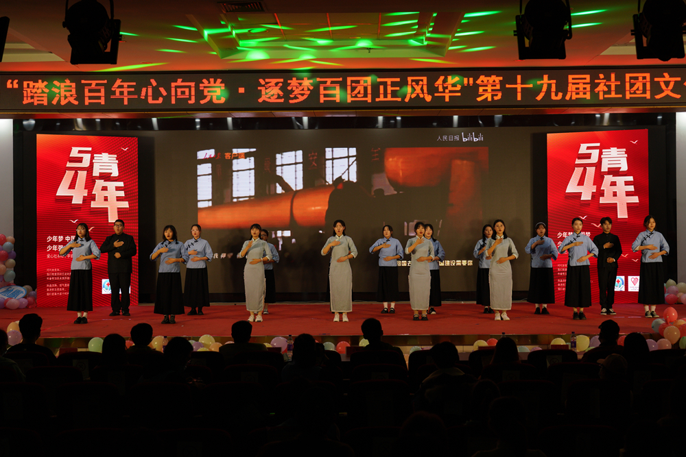 第三篇章《爱国情·筑科大》,青年学生带来的音乐剧《爱一直在》诉说了青科大学子“与母校同行”的誓言;爱心社、红十字学生分会的《错位时空》号召青年学子牢记“五四精神”,激发“功成不必在我,功成必定有我”的青春豪情;音乐爱好者协会和青音吉他协会的《音为有你·启梦科大》唱出了青年学生踏上新征程、面向新未来,砥砺奋进、追梦前行的必胜信心。