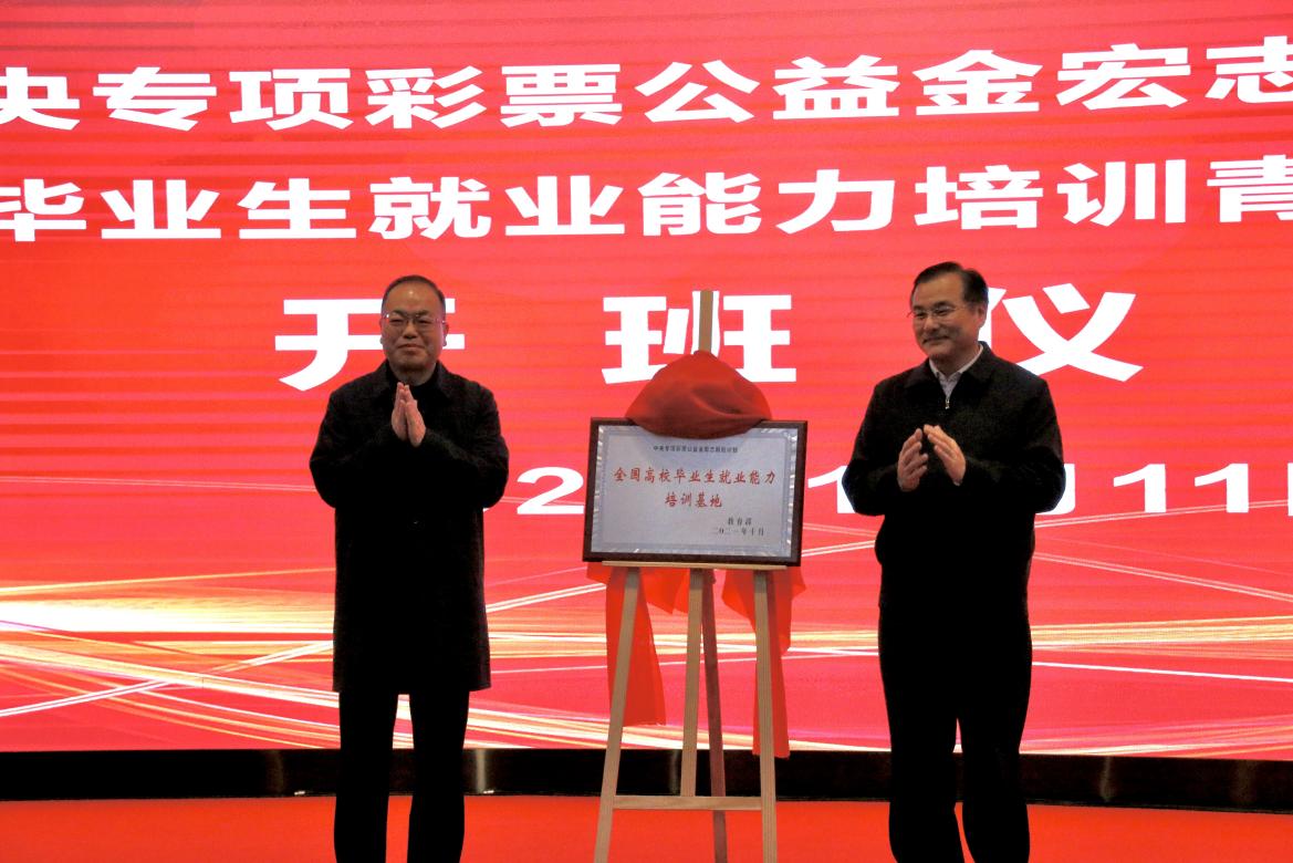 12月11日,教育部、财政部“中央专项彩票公益金宏志助航计划全国高校毕业生就业能力培训基地”揭牌仪式暨首期培训开班在崂山校区第三报告厅隆重举行。党委常委、副校长丁林,党委常委、宣传部部长陈刚出席仪式。校内外授课专家代表、首期参训毕业生代表参加了活动。丁林、陈刚为“全国高校毕业生就业能力培训基地”揭牌,丁林为来自歌尔股份、华为慧通、泰凯英轮胎、上海赴外交流中心、青岛智慧湾、诗迈医药、华夏基石、英科股份等名优企业和学校选聘的校内授课专家讲师颁发聘书。学校将以基地的建设与运营为契机,进一步提升毕业生就业创业工作水平,不断推动学科专业布局优化、教育教学改革、就业服务能力提升“协同融合”,持续推动毕业生就业创业内涵式高质量发展,提升学生获得感和幸福感,着力打造具有青科大特色的“一体两翼三化”就业创业工作模式。