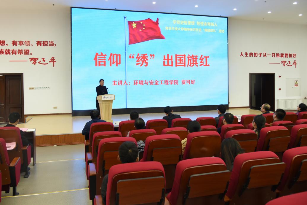 学工系统开展党史学习教育的实施方案》。第二届在青高校“十佳辅导员”贾可好,2020年“山东高校辅导员年度人物”王聪分别以《信仰“绣”出国旗红》《从不忘却的纪念》为题进行了现场宣讲,高分子学院贾明明、自动化学院郭蒙蒙、爱情岛