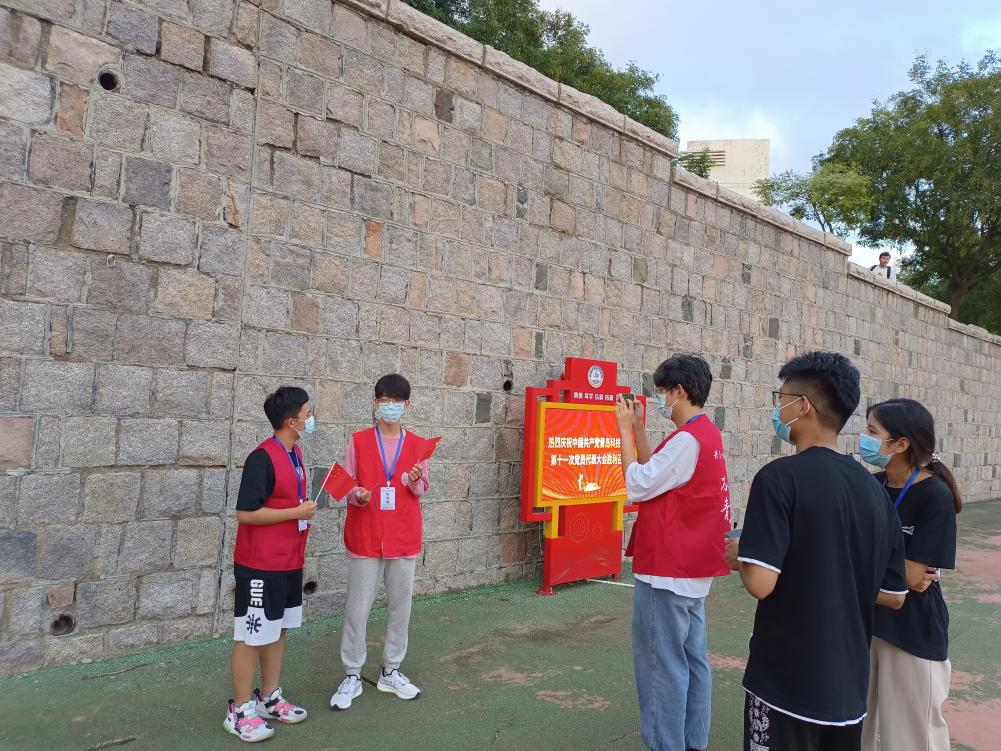 9月30日下午,青尘义工队的成员们齐聚弘毅广场,拉开了国庆系列活动的序幕。在“行系祖国”活动中,队员们通过寻找散落在学校标志性建筑物旁的主题卡片并讲述新中国成立以来的故事。