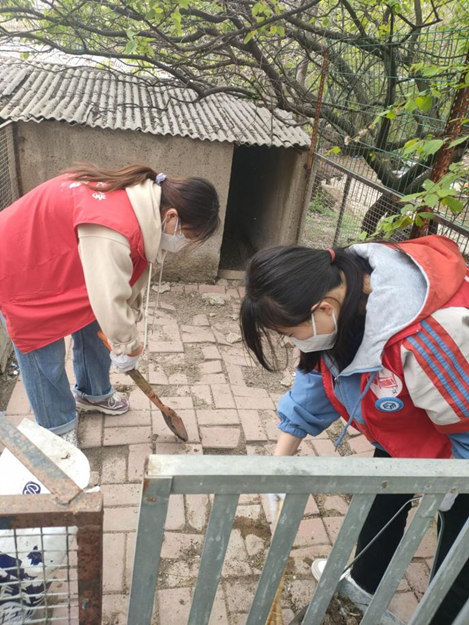 活动开始前,会员们分成两两一组,在救助站负责人详细讲解完主要工作和注意事项之后,相互配合打扫犬舍。在这两个半小时的过程中,会员们认真打扫,默契配合,男生主动承担体力活,女生自觉做好细节工作,真正做到“眼里有活”。