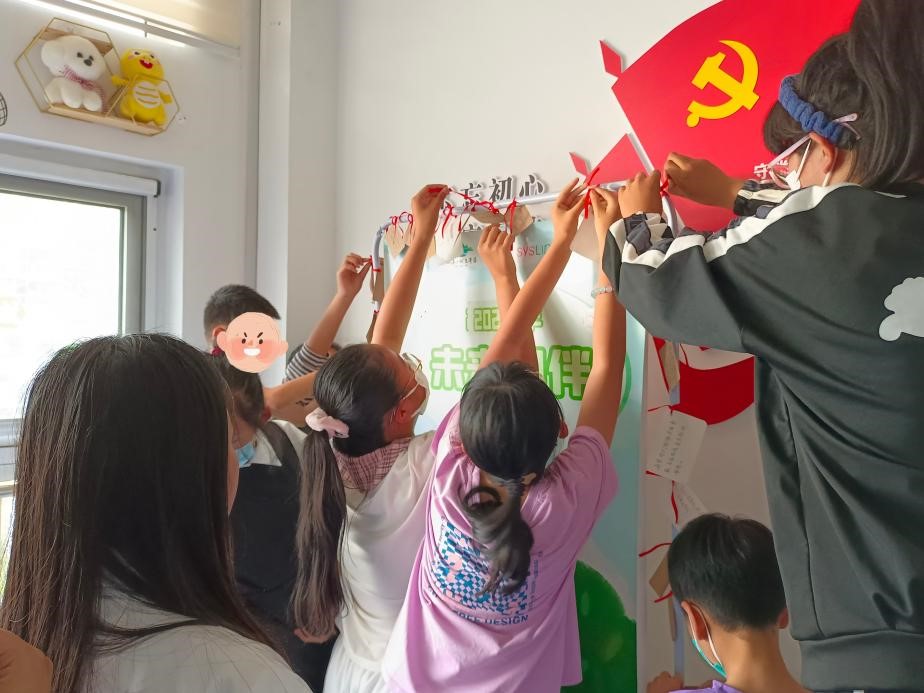 团辅过后,志愿者们向在场的孩子们诵读了“伴我同行”国际六一儿童节募捐活动期间收集的祝福贺卡,传达了来自青科广大师生的真诚祝福,并由小朋友们亲手将卡片挂于展板上。孩子们欣喜的笑容与真诚地道谢鼓舞着志愿者们更加用心做好志愿服务。