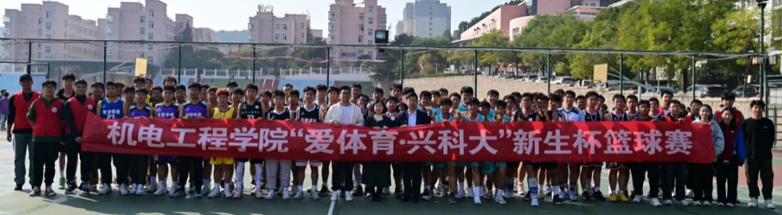 于南苑篮球场举办“爱体育,兴科大”迎新杯篮球赛。23级26个班级参加。