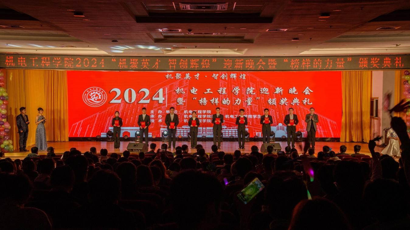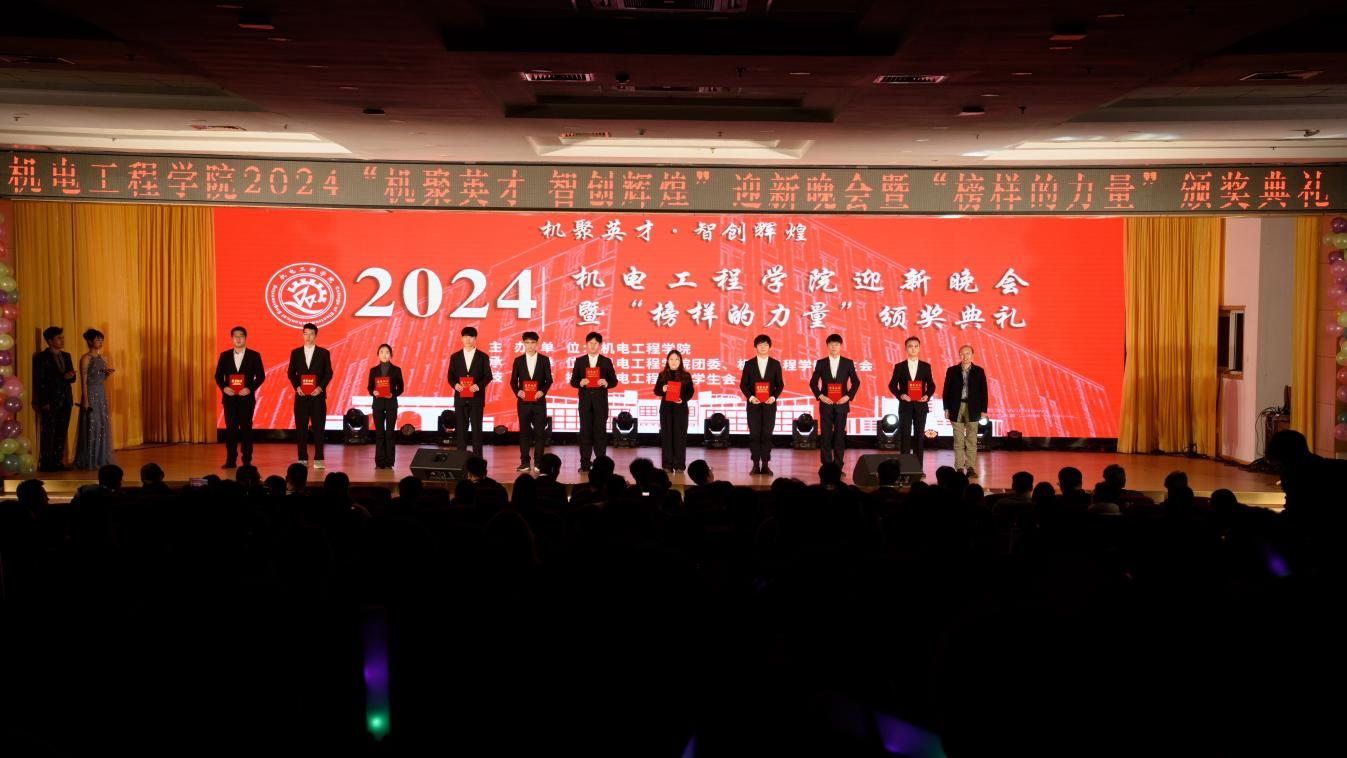 2024“机聚英才·智创辉煌”迎新晚会暨“榜样的力量”颁奖典礼在崂山校区第二报告厅举办。学院党委书记任允晓、党委学生工作部副部长李春家、校团委副书记李浩、学院副院长杨化林、学院副院长李剑光、学院党委副书记兼副院长杨小明、各兄弟学院团委书记代表以及全体团委老师和2024级全体新生参加晚会。