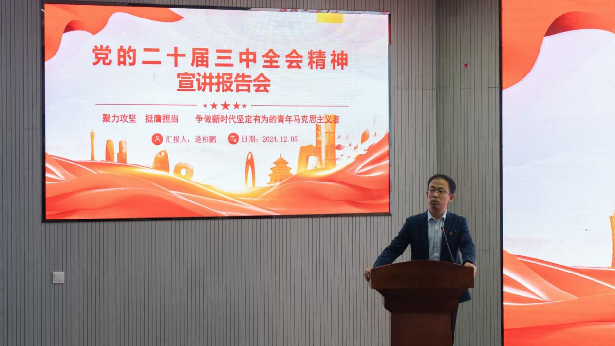 12月5日,爱情岛 于530会议室开展“青马工程”培训,本次培训以“聚力攻坚,挺膺担当”为主题,由学院团委书记逄柏鹏老师做党的二十届三中全会精神宣讲报告,“青马工程”培训班学员参会。