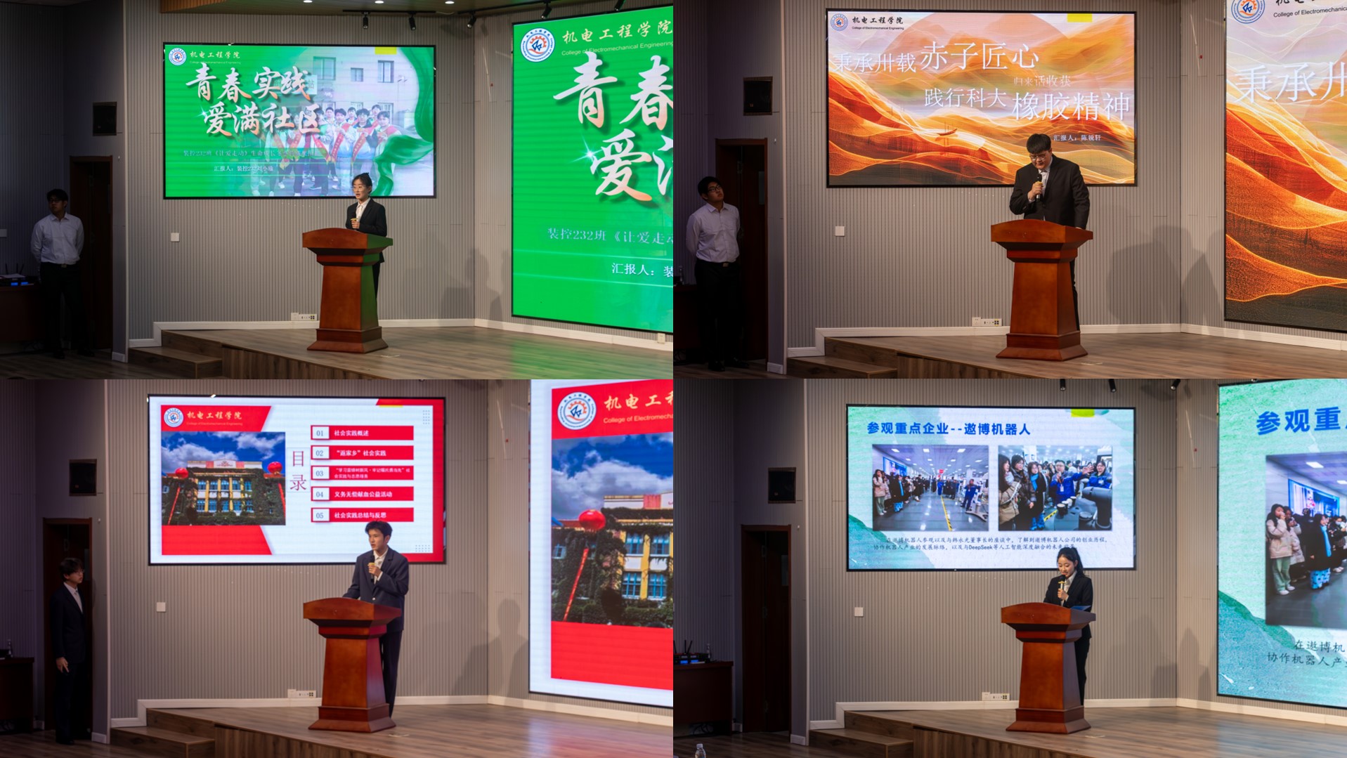 在交流答辩环节,2023级与2024级优秀学生代表围绕“科技助农”、“智能制造助力乡村振兴”、“工程实践进基层”、“社区志愿服务”等主题,结合自身实践经历,分别从活动内容、实践成果、社会影响、媒体宣传等方面展开汇报,全面呈现了本次寒假社会实践的生动图景。