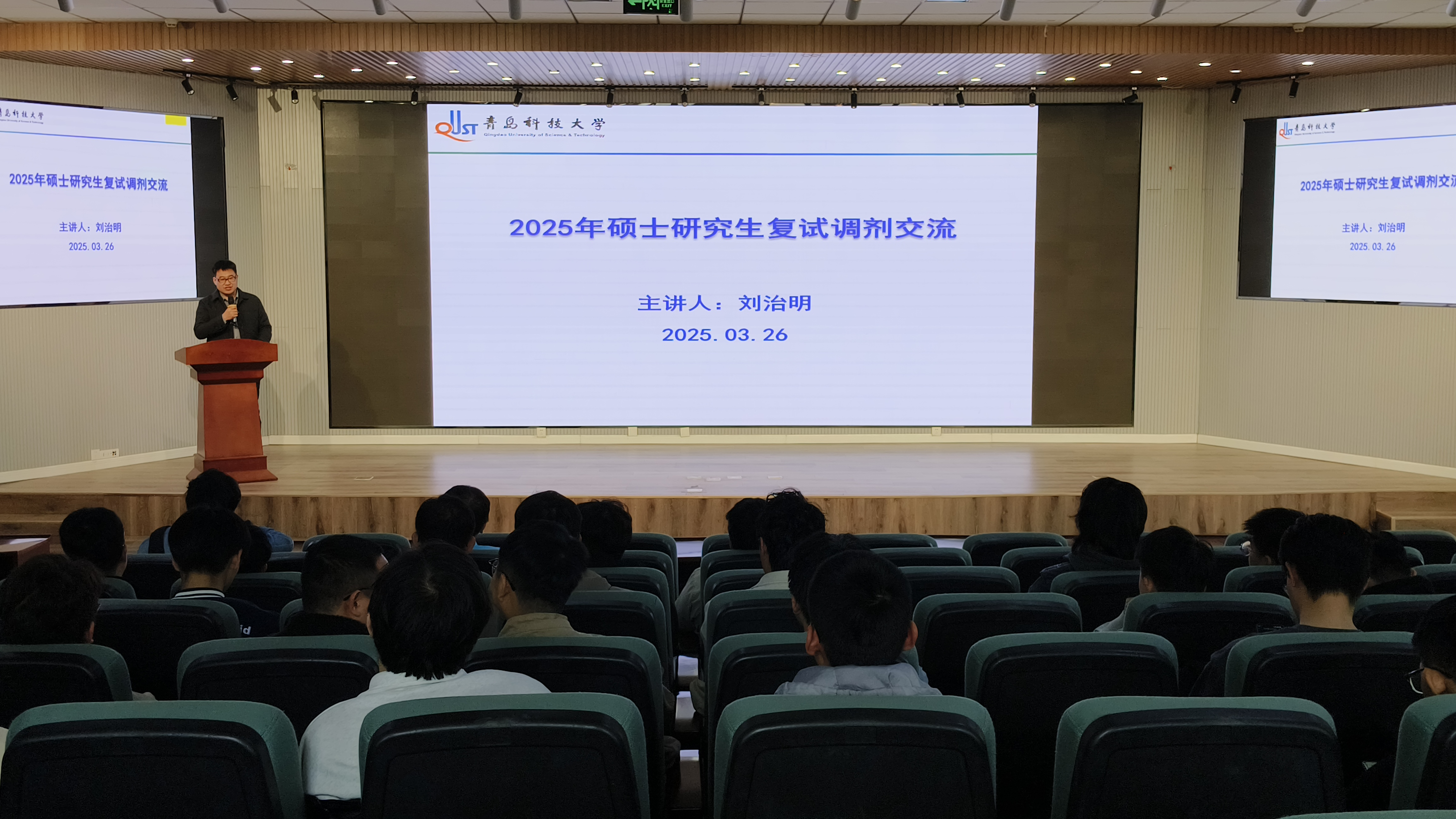 于3月26日下午在机电楼D3-530会议室举办“2025年硕士研究生复试调剂交流会”。学院副院长刘治明应邀担任主讲人,2021级考研学子及辅导员参加交流会。
