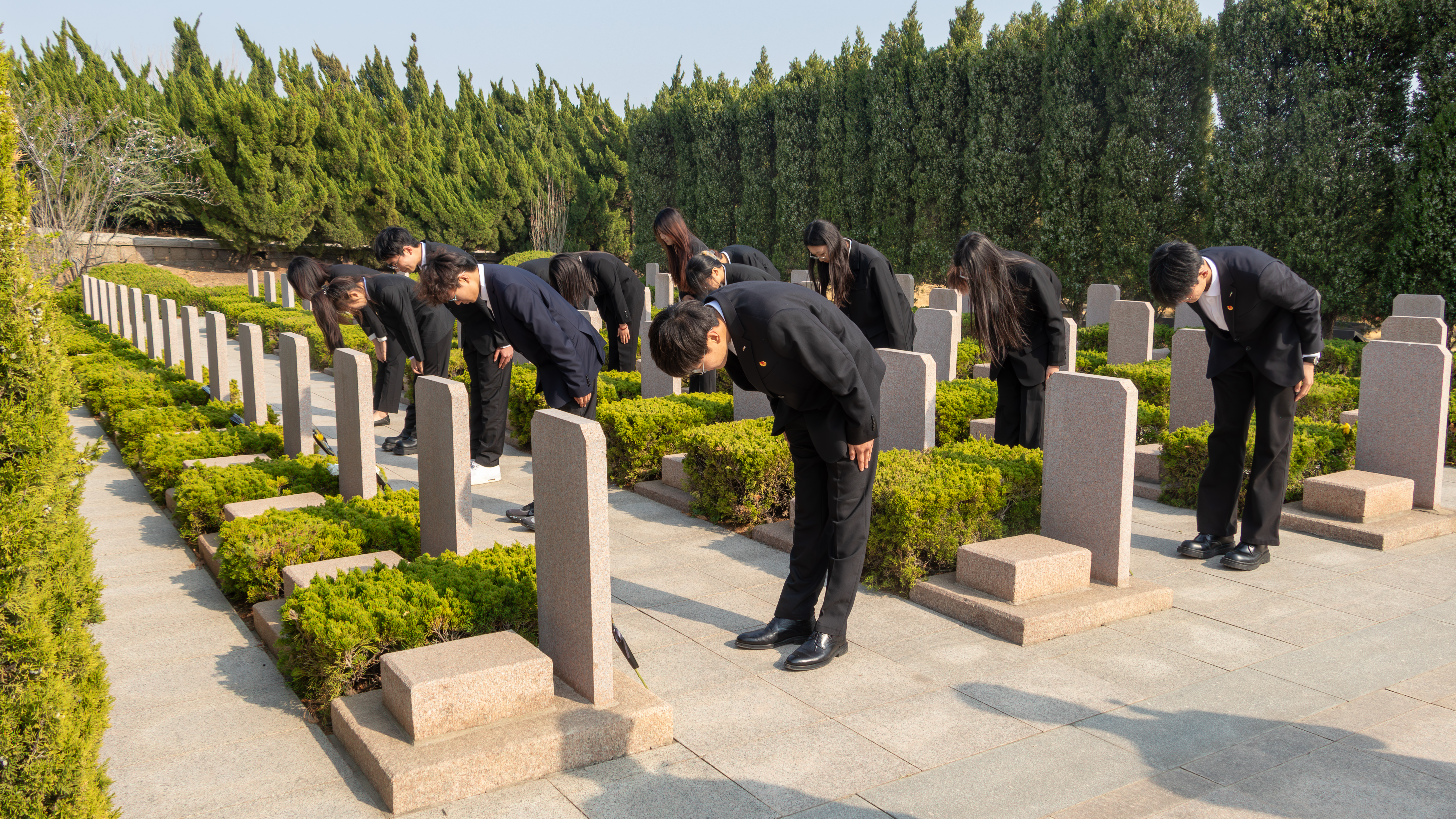 在烈士陵园中央的英雄纪念碑前,全体师生庄严肃立,默哀致敬,深切缅怀革命英烈的不朽功勋。随后,大家依次敬献鲜花,寄托哀思,表达崇高敬意。面对鲜红的党旗、团旗,全体党员、团员郑重地重温入党、入团誓词,铿锵誓言在陵园上空回响,告慰先烈,彰显了新时代机电青年的责任与担当。