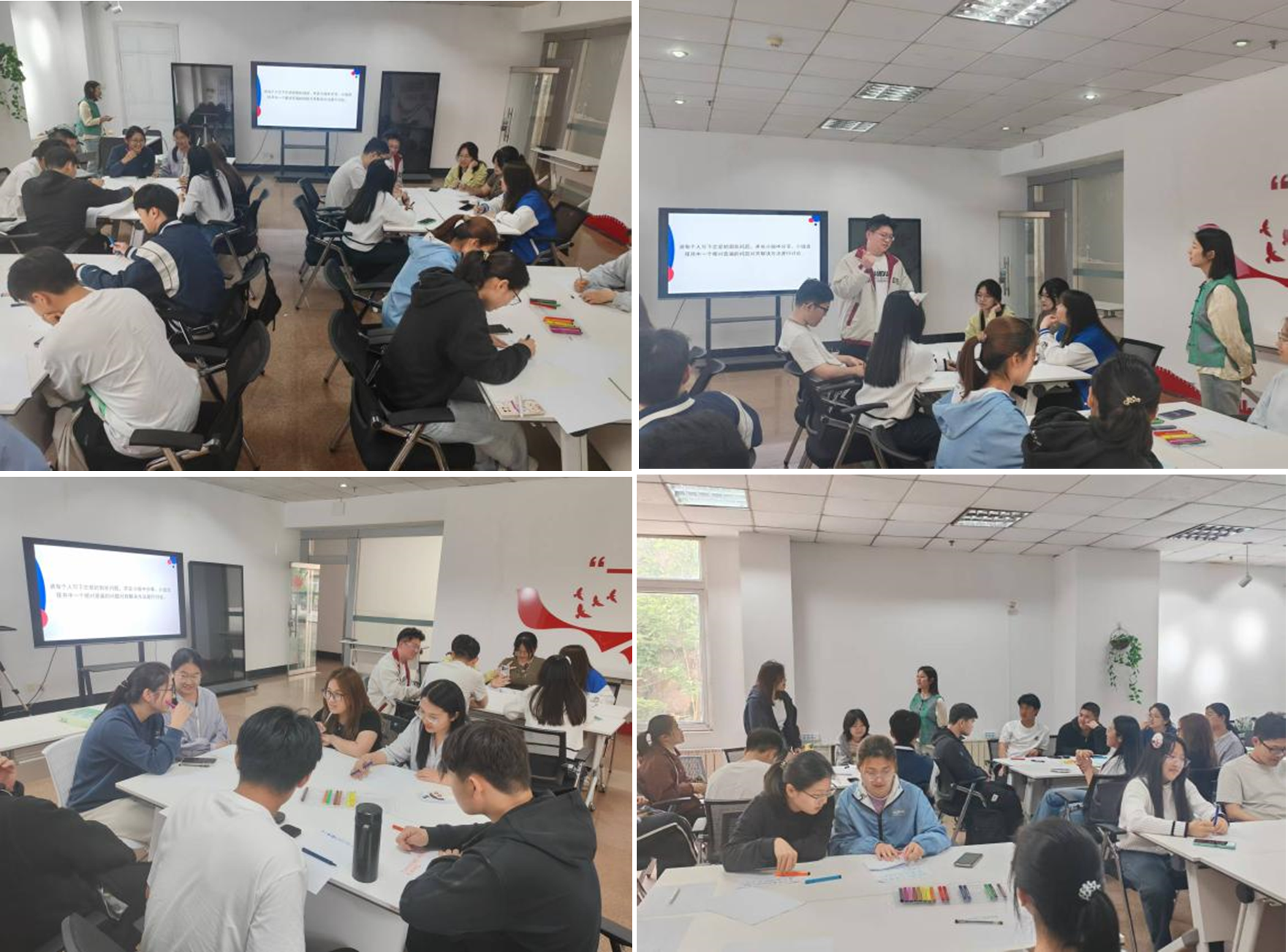 刘璐将专业理论转化为生活恋爱的引导方式,通过阐述“埃里克森人生发展八阶段”理论和“爱情三角理论”理论,引导学生科学理解恋爱和亲密关系,也为后续“爱的沟通”“情感表达”等环节做好了充分的心理铺垫。在互动交流环节,刘璐请每位同学写下自己在恋爱中遇到的困扰,并在小组内分享。各小组围绕恋爱困扰展开热烈讨论,筛选出相对共性的问题,探讨解决方法。学生各抒己见,在思维的碰撞中,不仅增进了对恋爱关系的理解,还收获了许多实用的恋爱沟通技巧与心理调适方法。