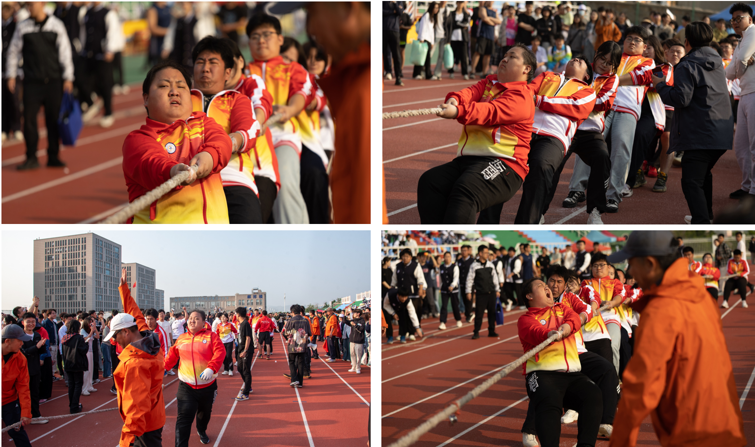拔河比赛现场气氛激昂,呐喊声此起彼伏。随着哨声响起,机电队员们稳扎马步、紧握长绳,即使脸颊通红、汗水滑落,仍以坚定眼神和顽强意志全力抗衡。他们用齐心协力的拼搏,展现了机电学子团结一心、永不言弃的精神风貌。