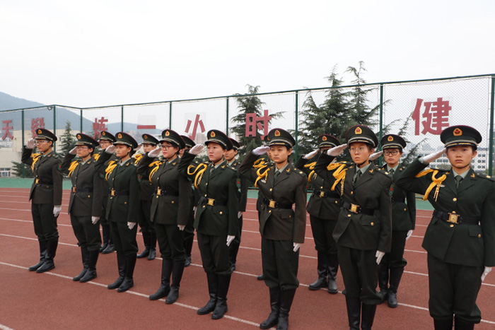 崂山校区大一、大二学生共同在崂山田径场举行升国旗仪式。