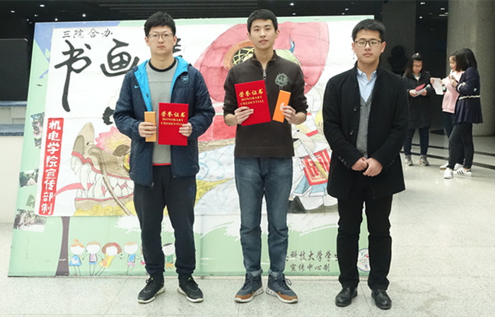 本次书画展由三个学院合作主办,所有参选作品共展出两天,并根据展出时的观众投票评选出三等奖六人,二等奖四人及一等奖两人。下午2:00,颁奖典礼正式开始。首先,由各位获奖者对本次书画活动进行了简单的回顾与总结,纷纷表示在此次大赛中收获良多,对自我的定位有了重新的认识,并希望学校可以多举办此类活动,帮助大学生们陶冶情操、修身养性。随后,颁奖环节正式开始,现场逐一揭晓了各个奖项,荣誉证书和奖品都被获奖者揽入怀中,现场气氛十分热烈。最后,曲智强老师对本次比赛作了简单总结,赞叹了参赛者们的高超水平,宣布了此次“书峥嵘岁月,画红色青春”书画展圆满落幕。