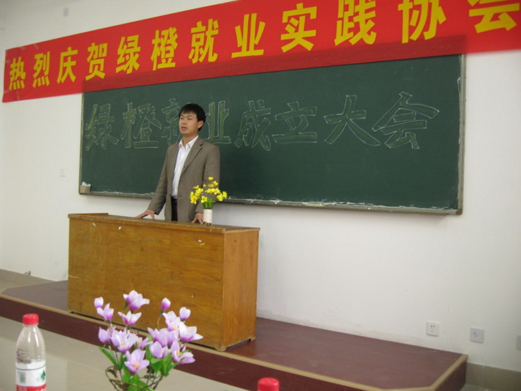 绿橙就业协会成立大会在高密校区11号楼207教室举行。爱情岛
