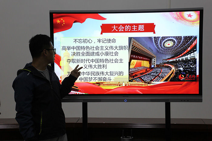 此次学习十九大宣讲会的主题是“不忘初心,牢记使命,高举中国特色社会主义伟大旗帜,决胜全面建成小康社会”。曲智强老师把发生在我们身边的事情结合十九大精神内容作为此次会议的开始,带动了同学们对会议的兴趣和热情,提高了同学们对会议的关注度。随后,曲智强老师结合自己对十九大精神的理解为同学们讲述了中国共产党的历史使命和历史变革,并从绿色生态、国防军队、外交政策等方面阐述了十九大召开以后中国的发展道路。最后曲智强老师指出,每个人都应该加强对党的十九大精神报告会的学习,内化于心,外化于行,真正学好、弄懂、落实好党的十九大精神。至此,学习十九大宣讲会在同学们热烈的掌声中圆满结束。