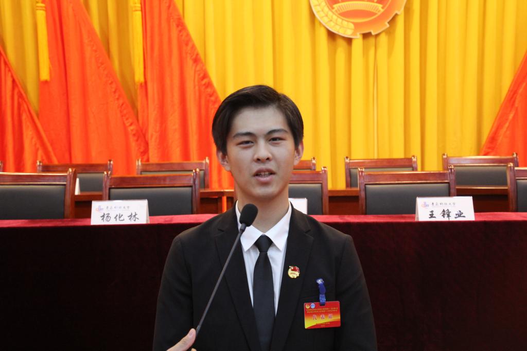 装控174班的杜张子阳,很荣幸能成为学生代表参加此次双代会,这既是一份荣誉也是一份担当。双代会是学院联系学生的纽带和桥梁,是学生参与民主管理和民主监督的基本形式之一,我将履行好义务,贡献自己的一份力量。最后,预祝大会圆满成功。