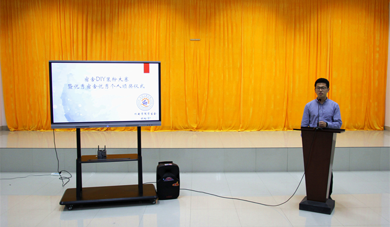 会议伊始,首先公布了宿舍DIY获奖名单,南苑九#722荣获一等奖,南苑9#1025、南苑9#703、北苑6#304获得二等奖,北苑2#223、南苑9#714、北苑6#227、南苑9#715、北苑2#104获得三等奖,北苑2#305获得最佳人气奖。随后公布了优秀宿舍及优秀个人奖。会议最后由曲智强老师做了总结发言,强调了宿舍的日常行为规范,他指出,宿舍是同学们之间联系最为密切、交流最为频繁的场所之一,一个良好的宿舍氛围是建设和谐校园的重要组成部分。至此,宿舍DIY装扮大赛暨优秀宿舍优秀个人颁奖仪式在同学们热烈的掌声中圆满落幕。