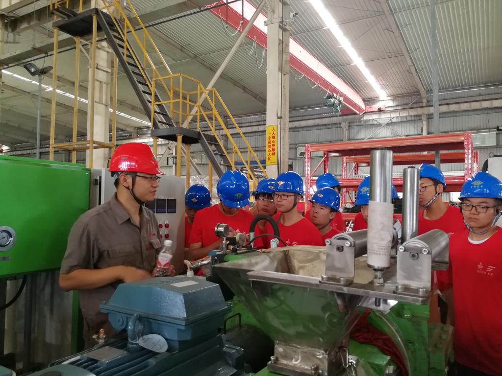 赴桂林橡胶工业设计研究院“英才工程师”实践团赴中国化学工业桂林工程有限公司(CGEC)合作单位--桂林合众国际橡塑机械制造有限公司(UPI)参观学习。