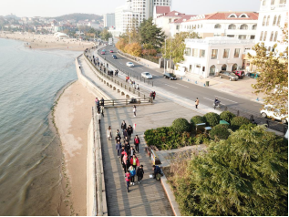 下午2:10,到达目的地,队员们挑旗前进,开始行走计步。在行走的过程中,队员们不怕辛苦,热情洋溢,并带着主动加入进来的两位小朋友一起玩耍。中途经过中国科学院海洋研究所、第二海水浴场、花石楼、紫荆关路等地方,队员们边欣赏美景,边合影留念,心情愉悦。下午5:30,青尘义工队全体人员在中山公园地铁站集合,开始返回。