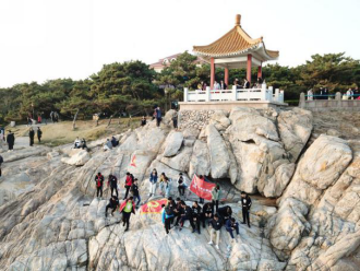 东门集合完毕,并拍摄了视频和照片。1:30,队员们出发前往八大关。