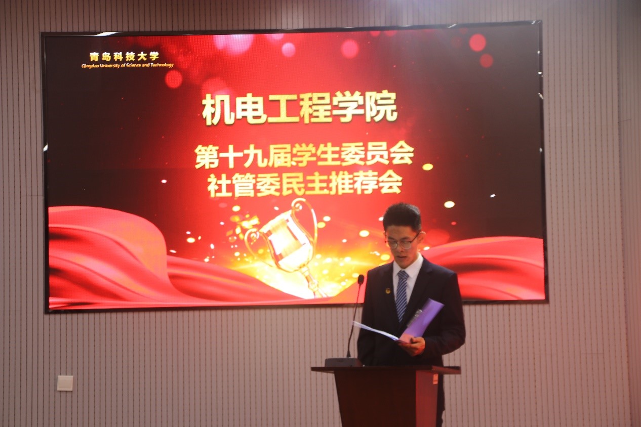 在机电大楼530会议室举行第十九届学生委员会社管委民主推荐会。院党总支副书记兼副院长王伟及分团委老师出席了此次活动。