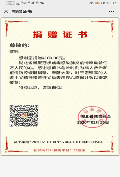 5、(捐款)陈行雨、李玉娇、宋文阳、蔡玮等同学通过各种慈善组织进行捐款志愿抗疫一线,贡献自己的一份力量。