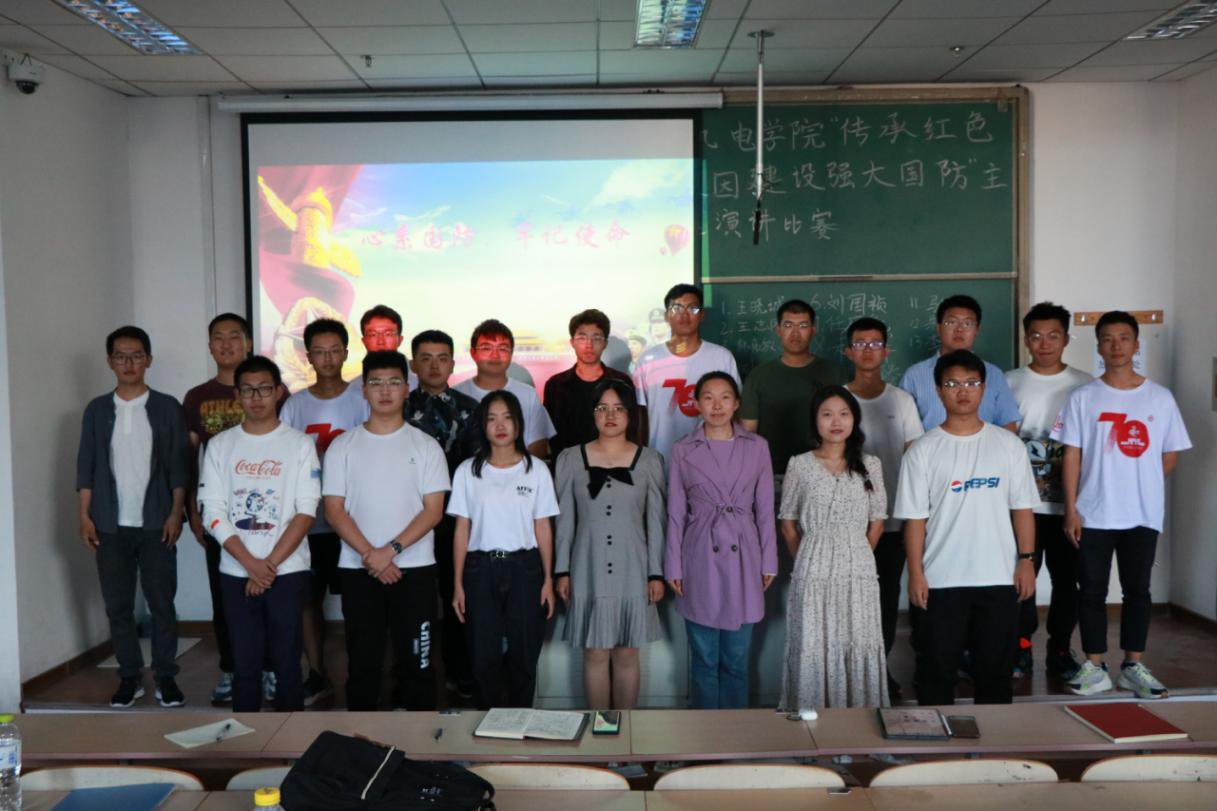 “传承红色基因、建设强大国防”主题演讲比赛,创新活动形式,丰富活动内涵,让学生更好的了解参与到红色文化的宣传中来,引导广大青年学生歌颂党歌颂祖国,抒发用青春报效祖国的使命情怀,用行动点燃强军报国的梦想追求,充分展示新时代大学生的精神风貌。学院还积极组织开展了“讲英雄故事、学革命先烈、做红色传人”主题实践活动,增强学生爱党、爱国、爱军的情感,激发学生长大建设祖国,献身国防的光荣感、责任感和使命感。