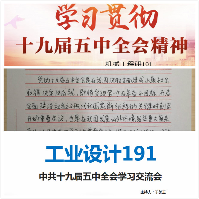 研191团支书朱伶俐说:“今年的突如其来的疫情,让我更加坚信党是引领中国前进的中流砥柱,更加坚定了我跟党走的决心。党的十九届五中全会是站在“两个一百年”奋斗目标的历史交汇点上召开的一次重要会议,为全面建设社会主义现代化国家把方向、定目标、绘蓝图、指路径,彰显了一以贯之的人民立场,体现了高远务实的发展战略,凝聚了治国理政的中国智慧,为第二个百年奋斗新征程开好局、起好步提供了根本遵循。”