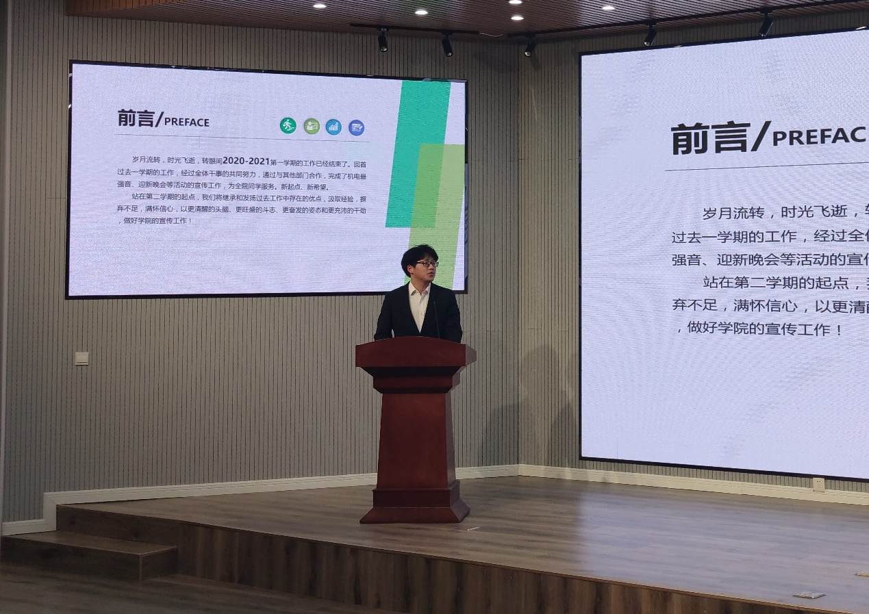 学生会完善了组织架构和考核述职体系,开创了项目组工作机制新模式,举办了多项重大活动,各部门协同合作,各位同学团结一致,圆满完成了各项任务。展望2020-2021学年度第二学期,爱情岛