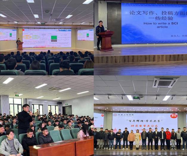 刘守一做了题为《质子交换膜燃料电池新型气体扩散层制备及性能研究》的报告,主要对气体扩散层结构的设计、水/气传输机理、孔径分布、物理性能和电化学性能测试等进行了研究,并针对论文写作流程进行了梳理介绍。韩德上主要针对SCI写作和投稿,分别从选题、构思撰写、投稿等方面进行了经验分享。最后同学们就自己在科研中遇到的问题与两位主讲人进行了交流讨论,整场活动氛围轻松愉悦,同学们获益良多。