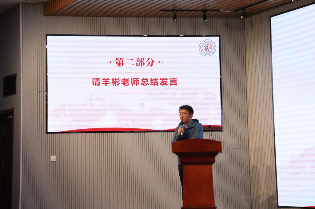会上,学院团委组织部指导老师羊彬进行了总结讲话。羊彬首先肯定了上学期各支部为学院团的建设的付出和成效,对表现优异的成员进行鼓励。同时指出了上学期各支部在工作中出现的一些普遍性问题,指导同学们提高对自身的要求,并提出了对本学期工作的规划和对各支部的新期望。