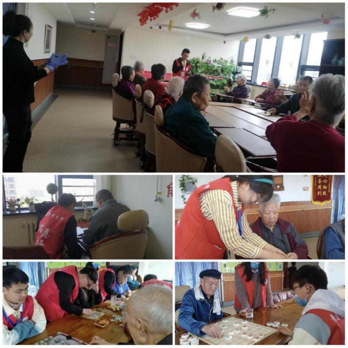 社区暖心陪伴,传递敬老真情。学院组织学生赴福山敬老院开展志愿服务活动,在护工的指导下陪老人看书聊天、下棋、拼图和唱歌,陪伴老人度过美好的午后时光。志愿者通过唱红歌、口琴、快书等才艺展示让爷爷奶奶十分高兴,他们的每一个笑脸都是对志愿服务活动的最大肯定。