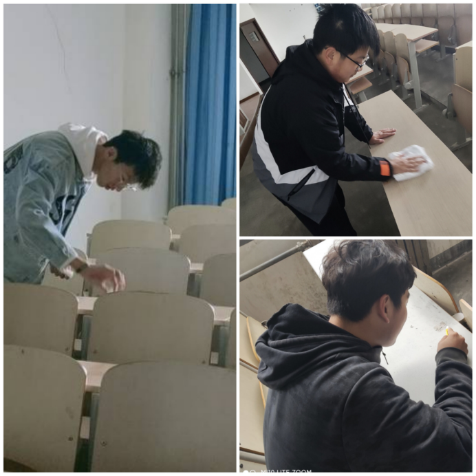 爱我校园文明,守护课桌清洁。学院积极组织校园课桌清理活动,志愿者们用湿毛巾仔仔细细地擦掉桌子上的笔记,刮掉课桌上的贴纸,擦黑板、清理讲桌,教室焕然一新,营造了良好的学习生活氛围。