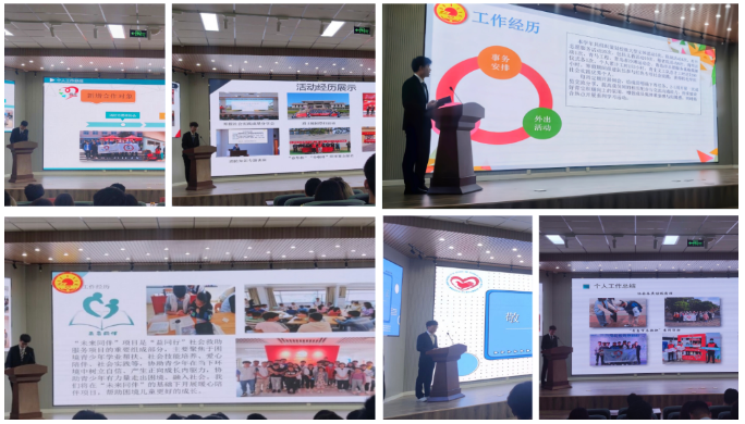 志愿者们踏实志愿,开拓创新,本学年累计志愿服务时长已达8256小时,展现了机电学子勇于担当、甘于奉献的志愿服务品质。六位竞聘人也从未来规划、紧抓实效等方面展开竞聘演讲,让我们对志工部未来的发展充满信心和期待。