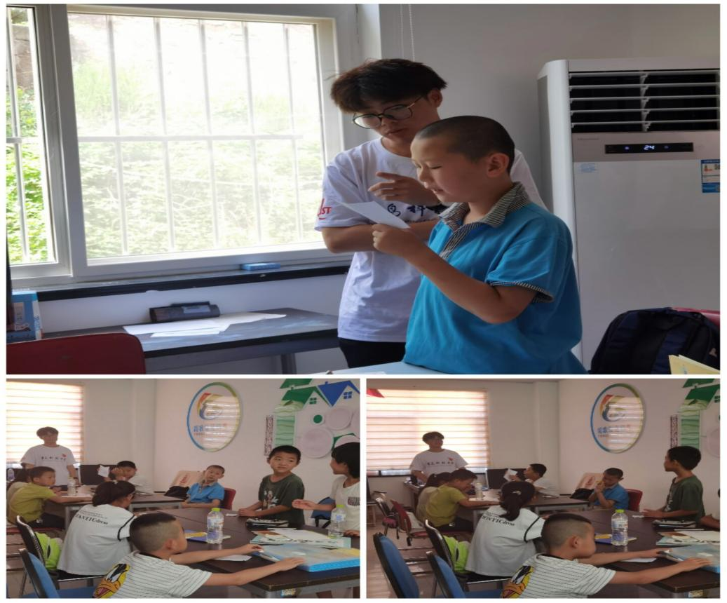 学习为主,安全护航。在本次活动中,上午的时间以学习为主。正值暑期,孩子们的主要任务就是完成暑期作业。为了更好的调动孩子们的积极性,养成良好的学习习惯。队员们给孩子们划分了小组,以便于他们可以更好的完成学习任务以及卫生清洁。同时,队员们也进行了分组负责孩子们的学习以及安全。