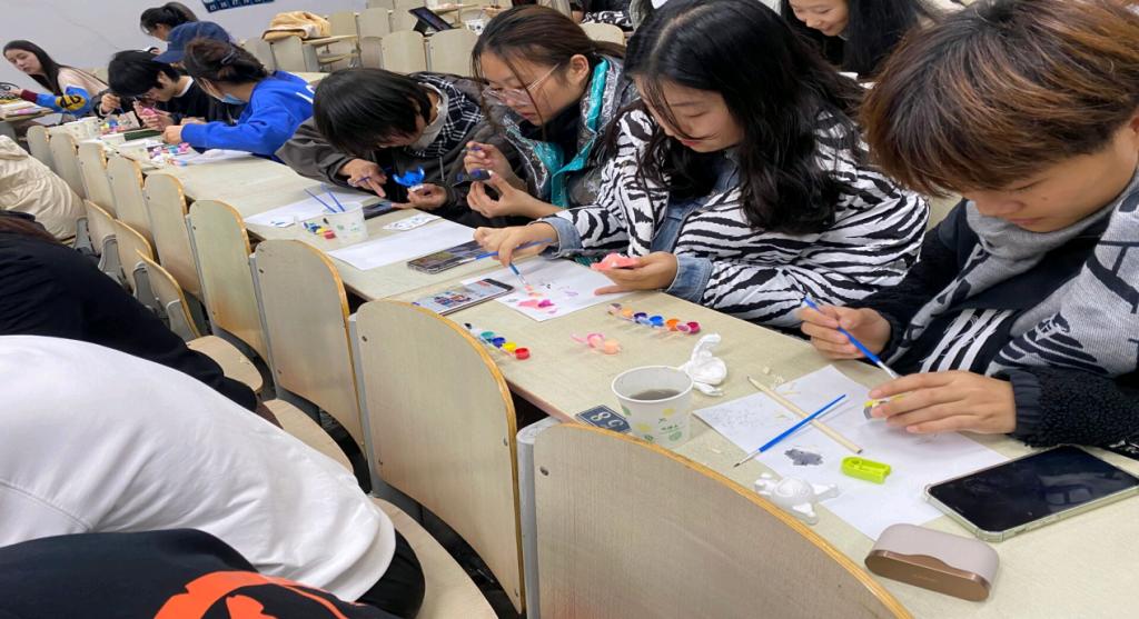 团委志工部微尘志愿者协会举办工艺彩绘义卖活动。