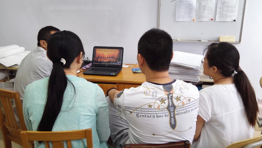大会议室集体收看了大会实况,各党支部组织师生分别收听收看了大会实况。