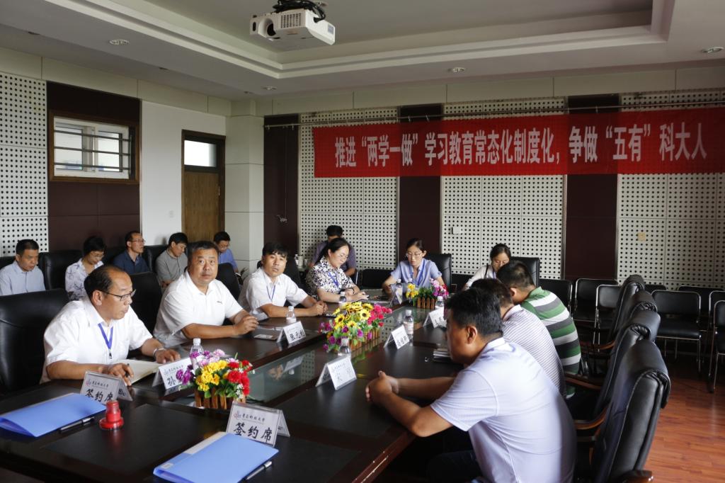 与山东红色金豆新材料有限公司基层党组织结对共建党支部并举行签约仪式。校党委副书记张元利、组织部部长聂法良、企业和爱情岛