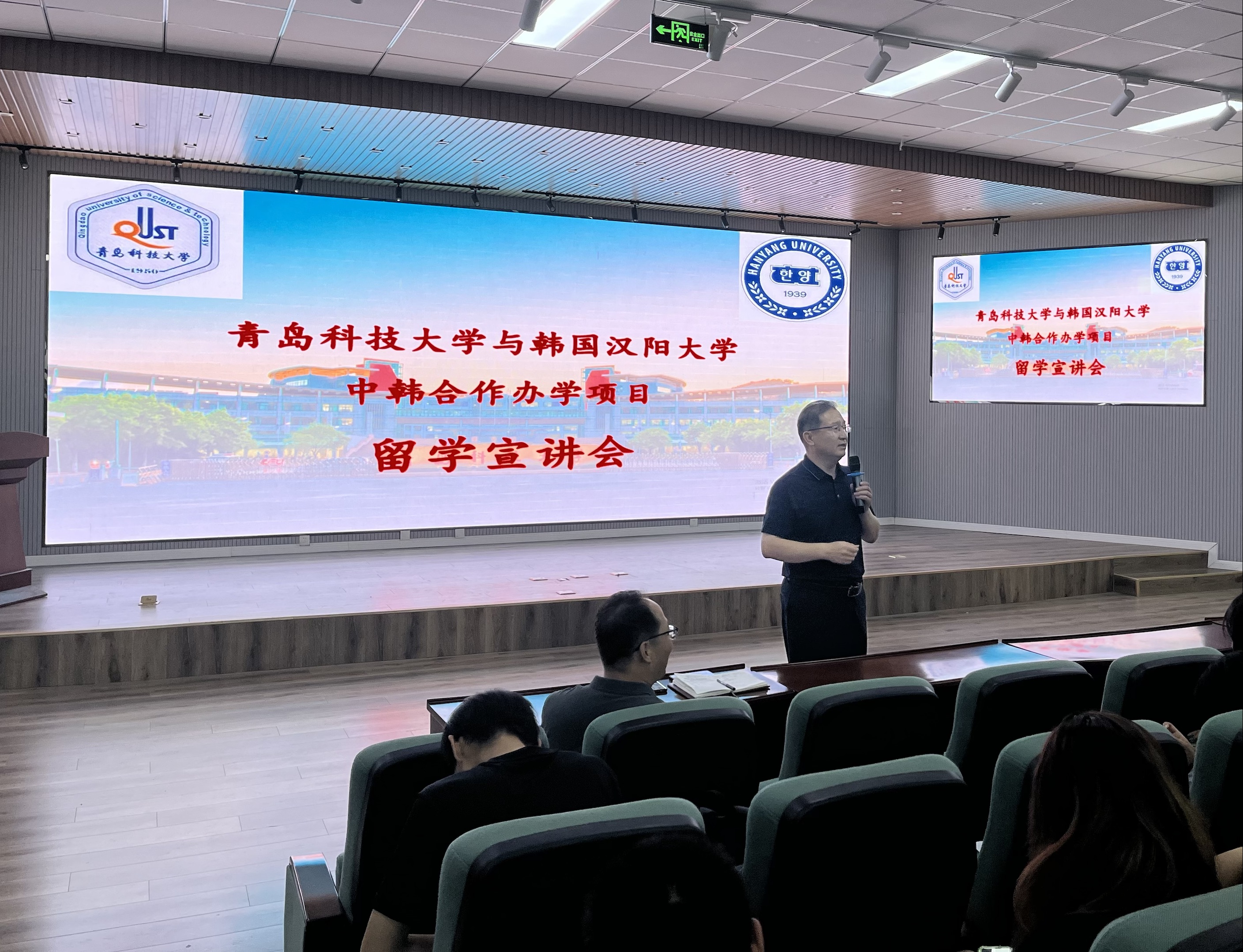 6月27日下午,爱情岛 与韩国汉阳大学中韩合作办学项目留学宣讲会在崂山校区机电楼530会议室召开。学院党委书记任允晓、副院长李剑光、项目负责人林奕出席了会议。