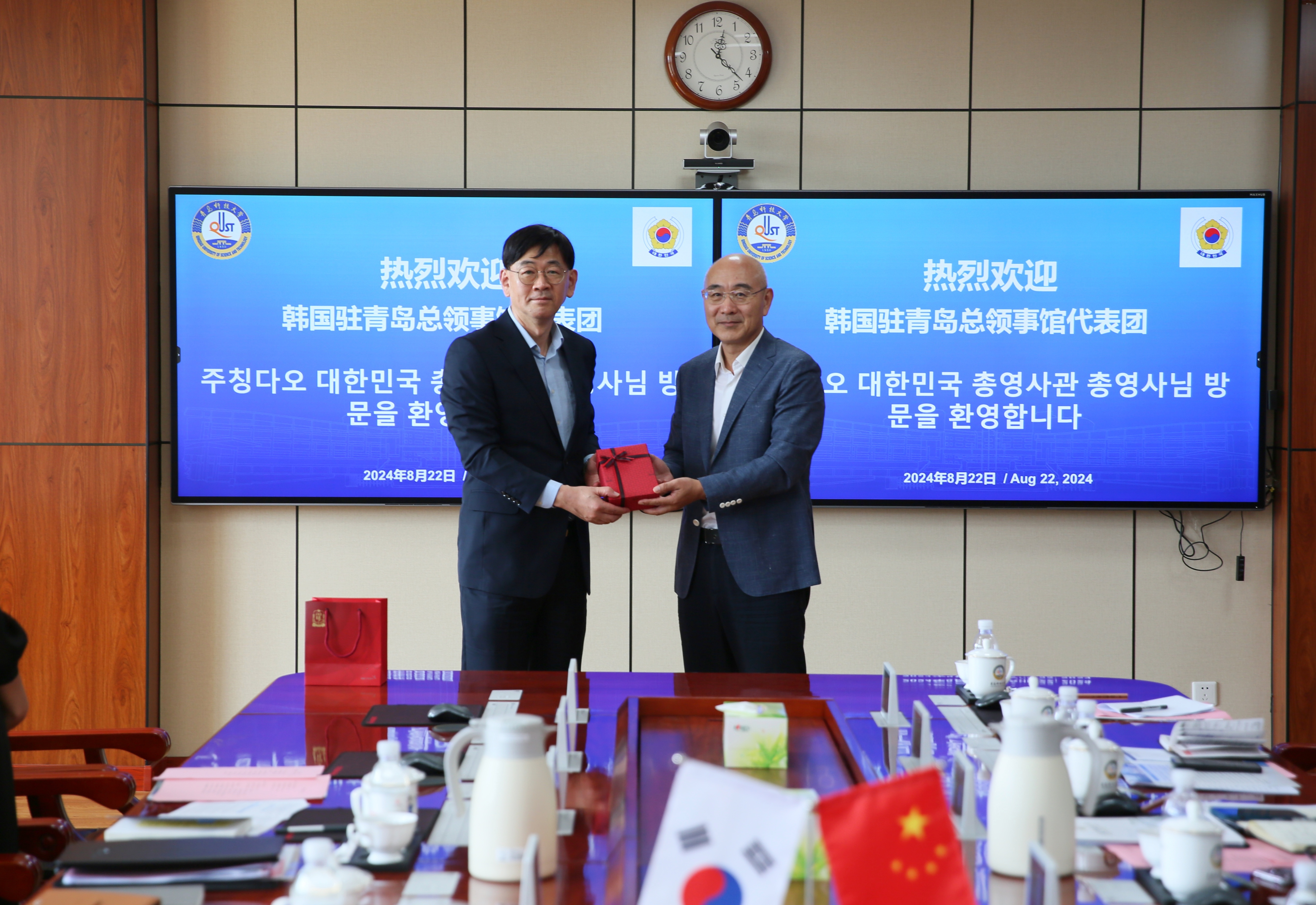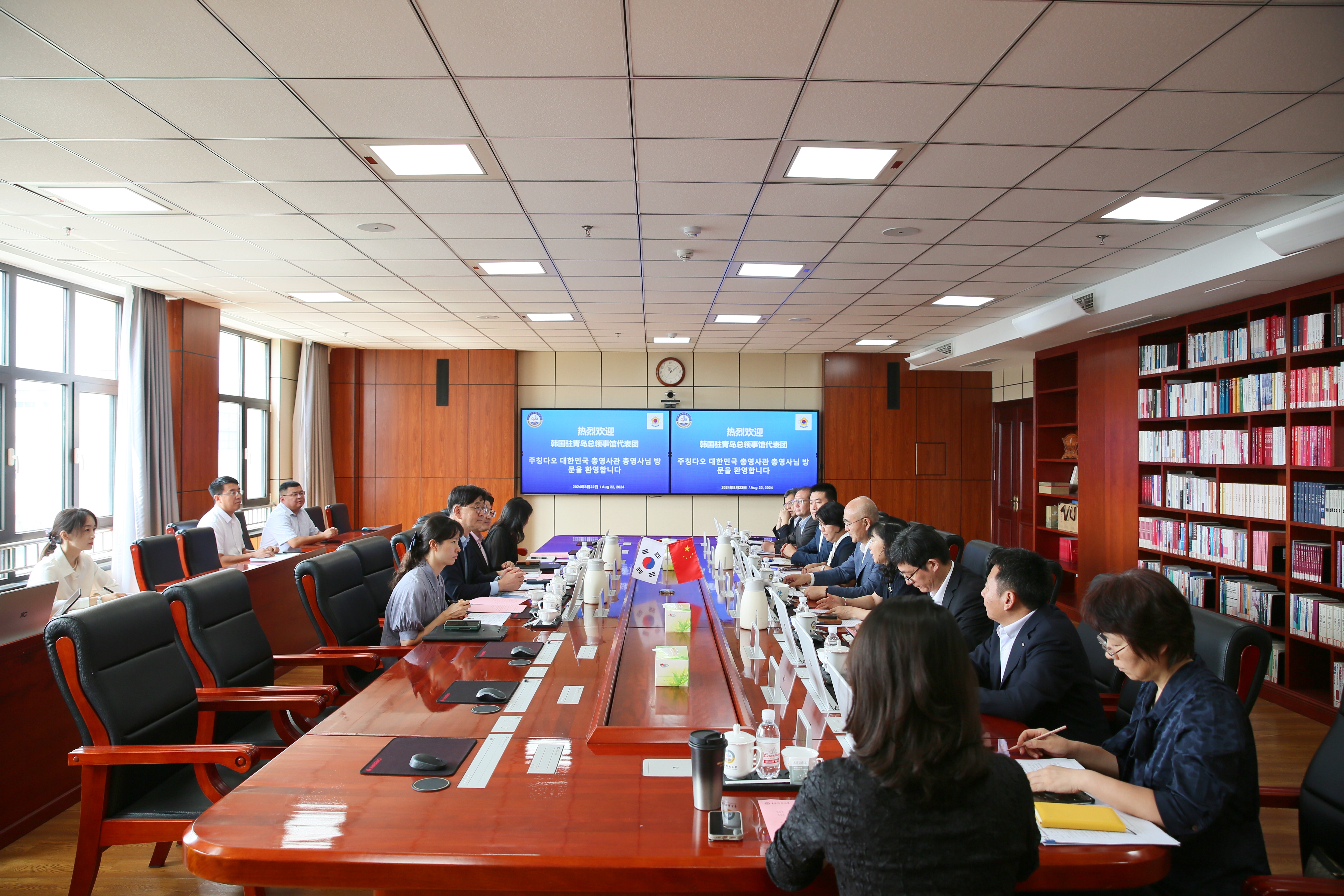 8月22日,韩国驻青岛总领事馆总领事柳昌秀一行来访,校长陈克正会见并座谈,党委副书记沈文青主持会议。