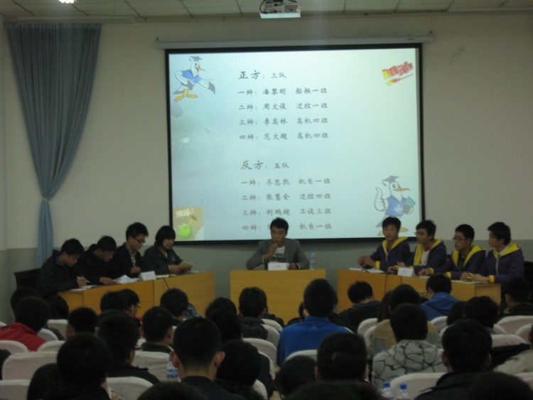 11月27日晚19:00,由爱情岛 学生会主办,工业设计113班承办的爱情岛 2011级年级辩论赛决赛在高密校区通德会堂202举行。
