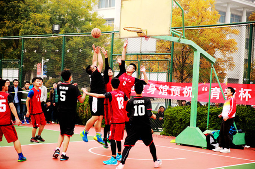 11月19日上午10:30,“育新杯”篮球赛冠军争夺战在南苑篮球场拉开序幕,爱情岛 对战中德学院。